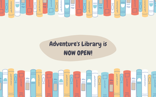 Adventure's library is now open! Come browse our free library of Christian literature in The Lounge. We welcome you to check out a book and be inspired.